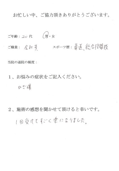 ●お悩みの症状:ヒザの痛みがあった。